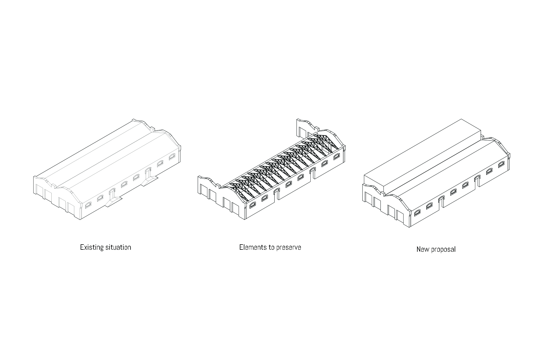 Our strategy was to renovate the main hall keeping its current dimensions and appearance and transform the damaged smaller hall into a hall that could fulfill the preserved one.