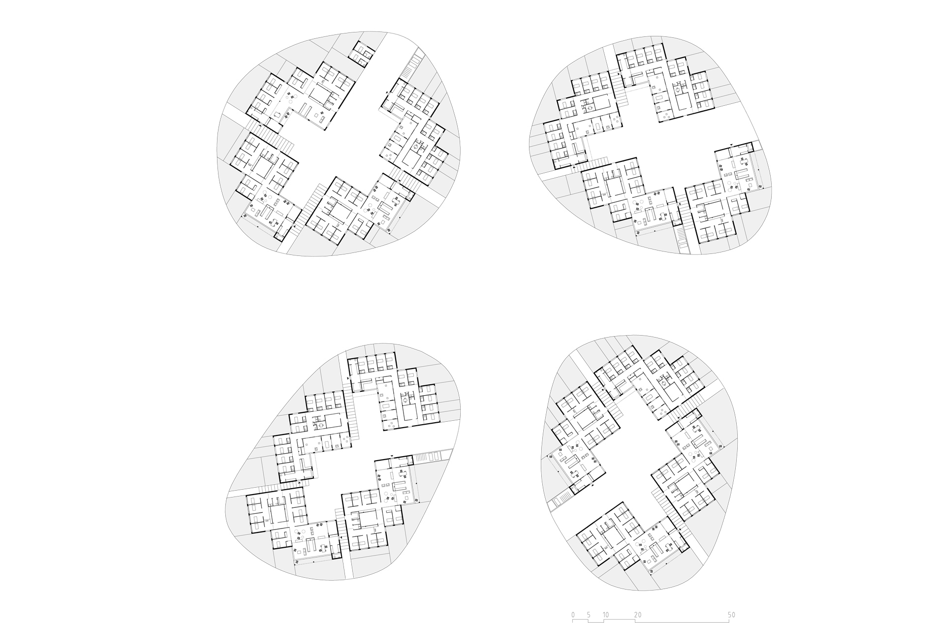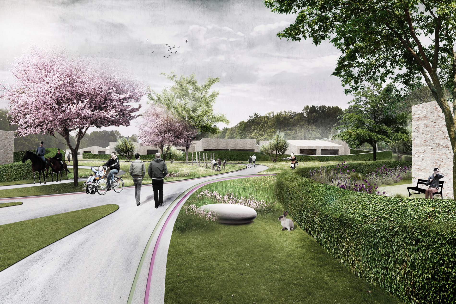 The residential areas are based on clusters. Each home accommodates eight to ten rooms and a cluster contains four houses around a common courtyard. The cluster is a village within the town of Zevenbergen DVC. The cluster is designed from the outside and from within. From the outside the cluster is defined by the hedge that delimits the cluster. The hedge provides a clear separation between the publicly accessible site and the domain of homes and residents. From inside the cluster opens outwards. Each house has its own entrance to the landscape. The common square of each cluster is connected with the infrastructure ring road.