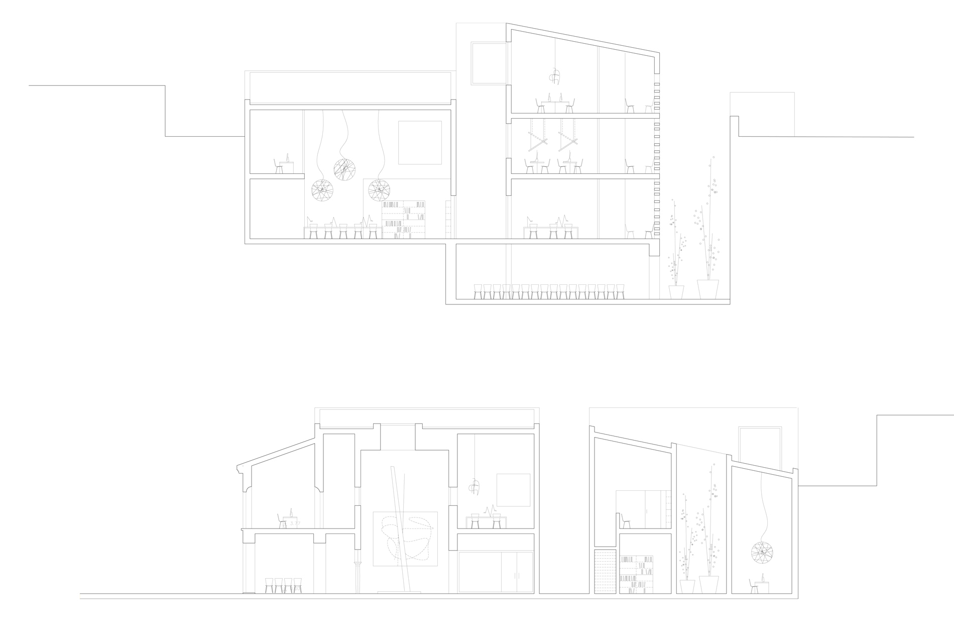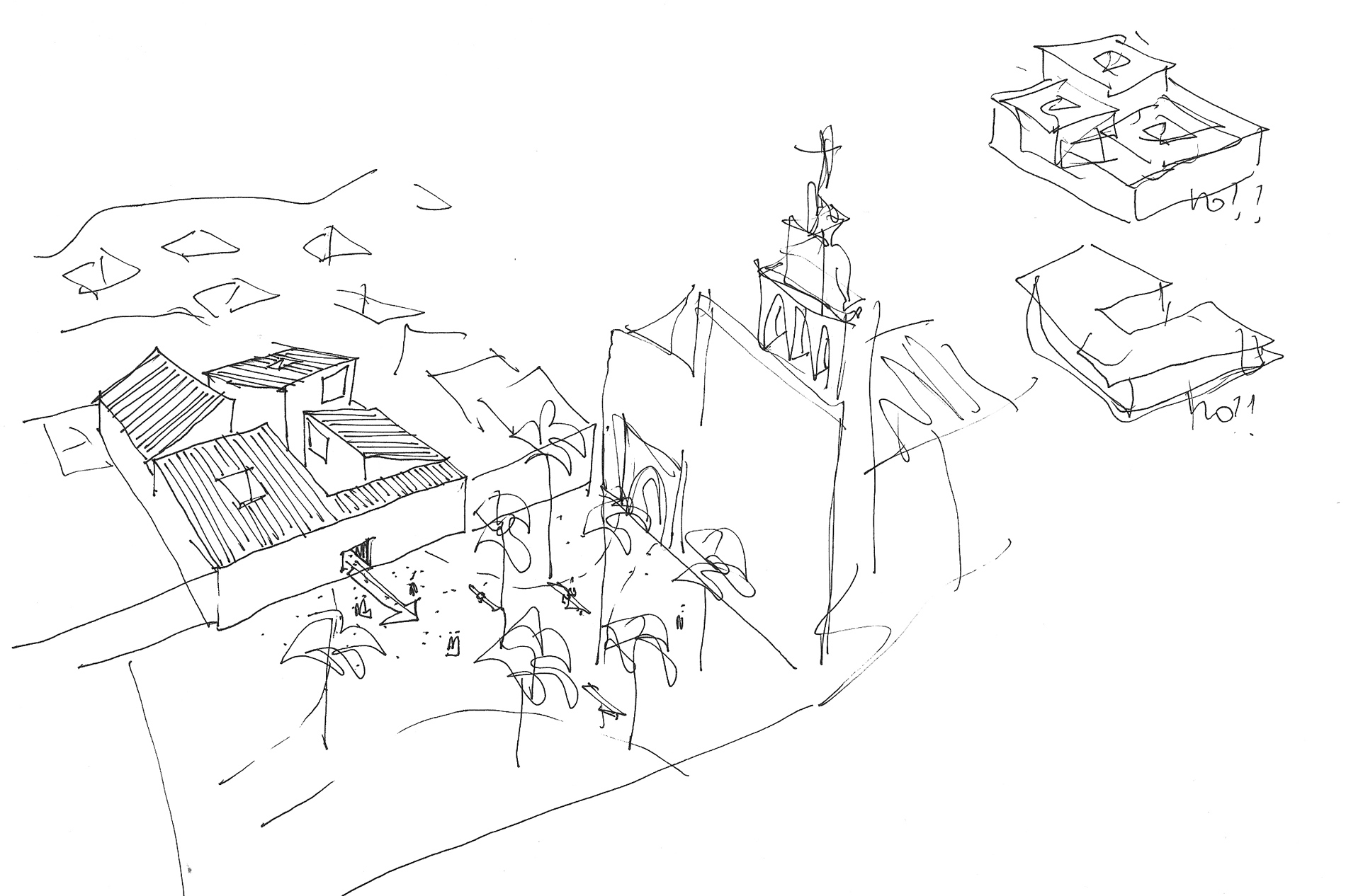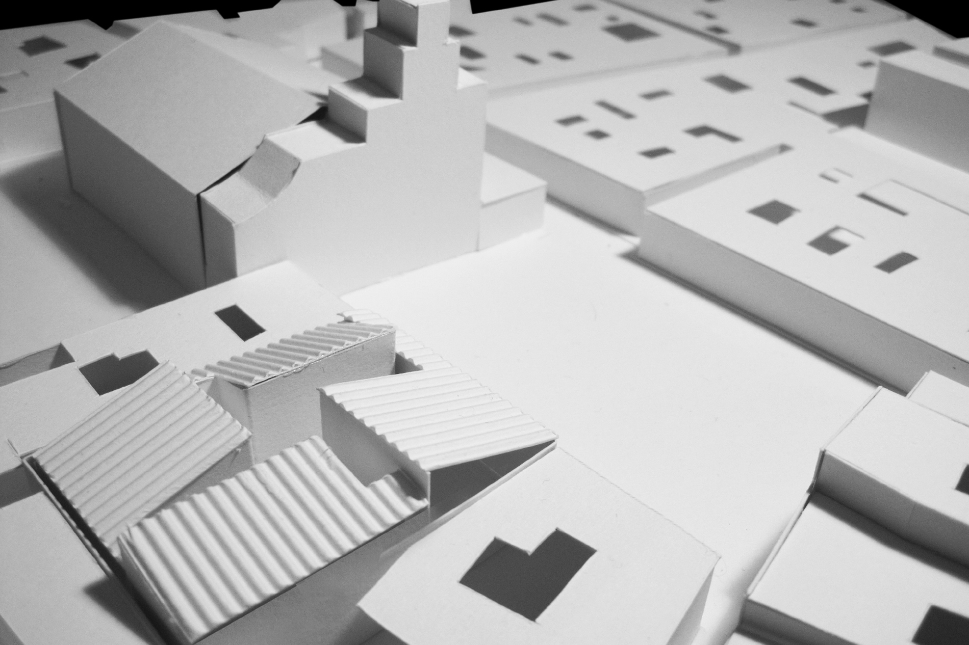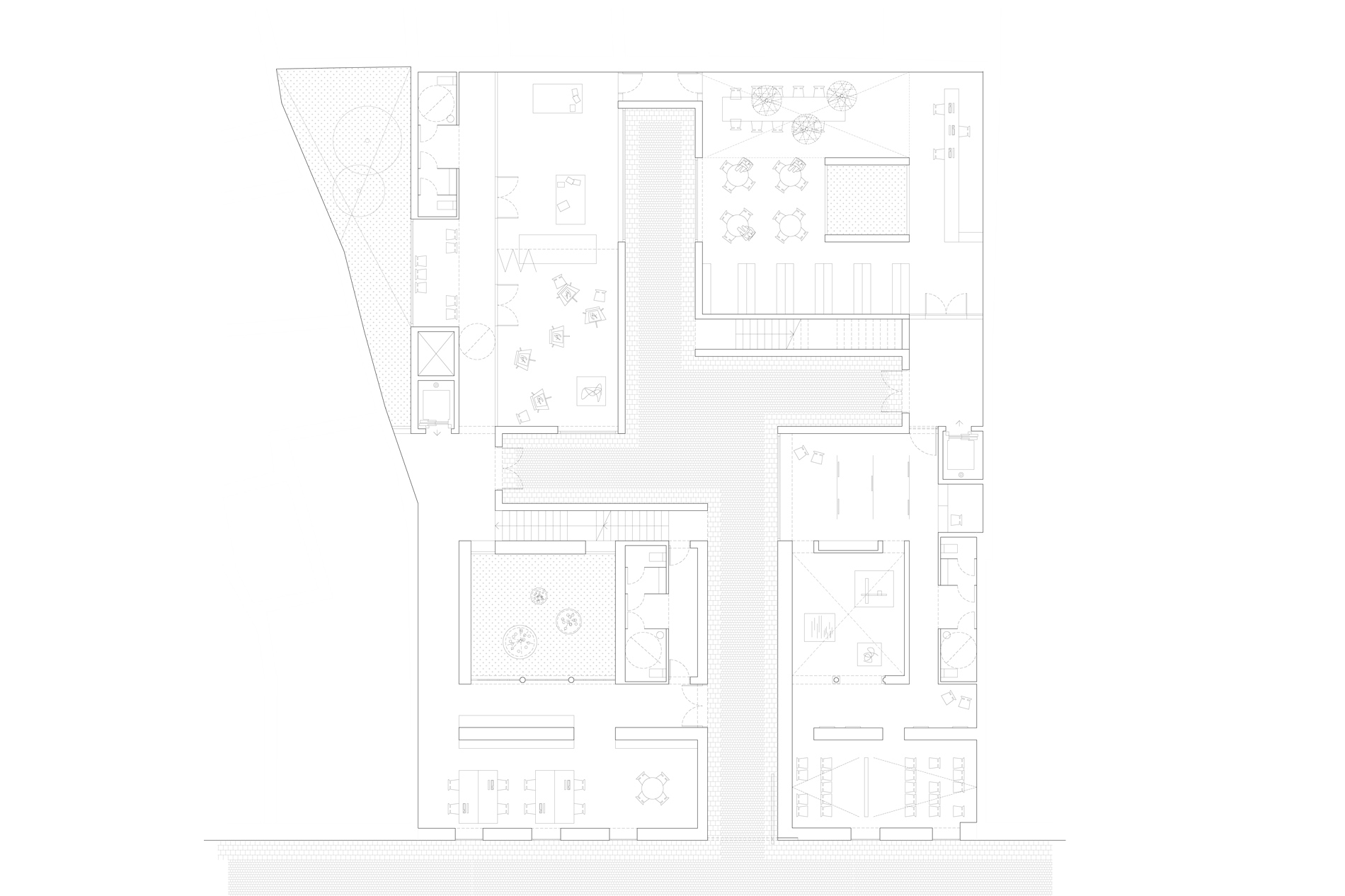 The different programs (library, offices, exhibition spaces and workshop areas) are organized around a main square. The four volumes with its sloped roofs get light and air from these streets.