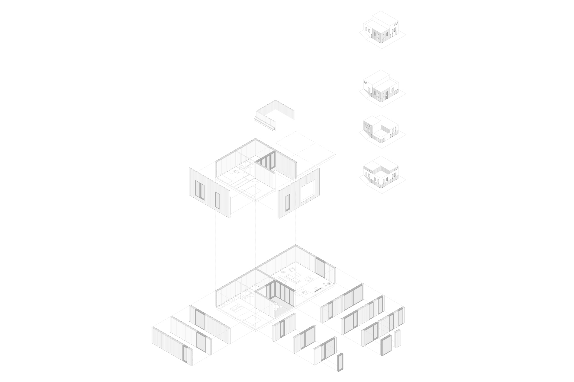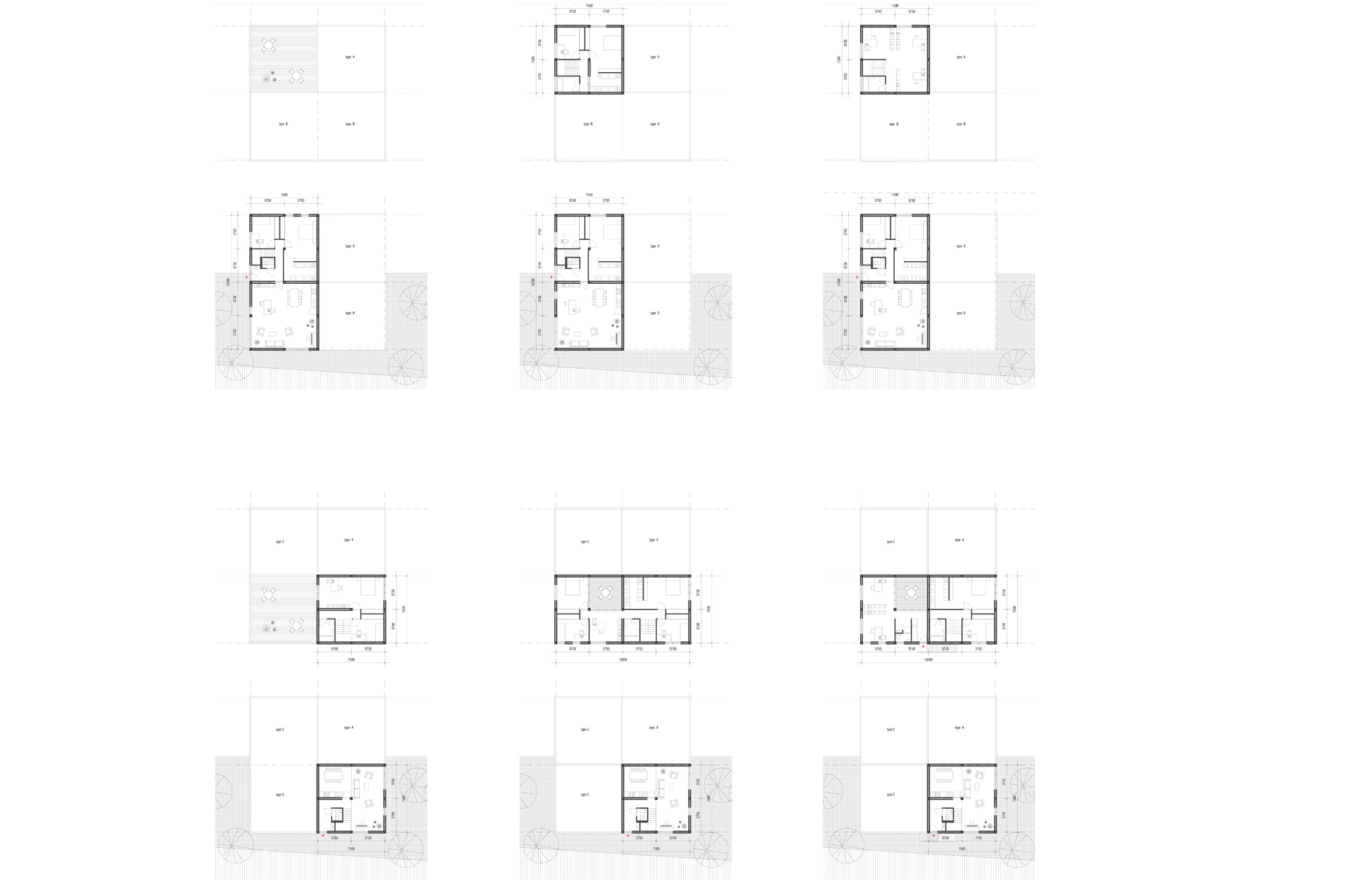 The starting point (as required in the design brief) is a house of 100m2 that could grow up to 150m2 and srink back to 100m2.