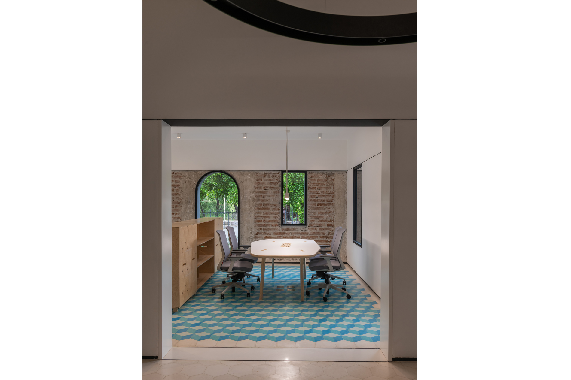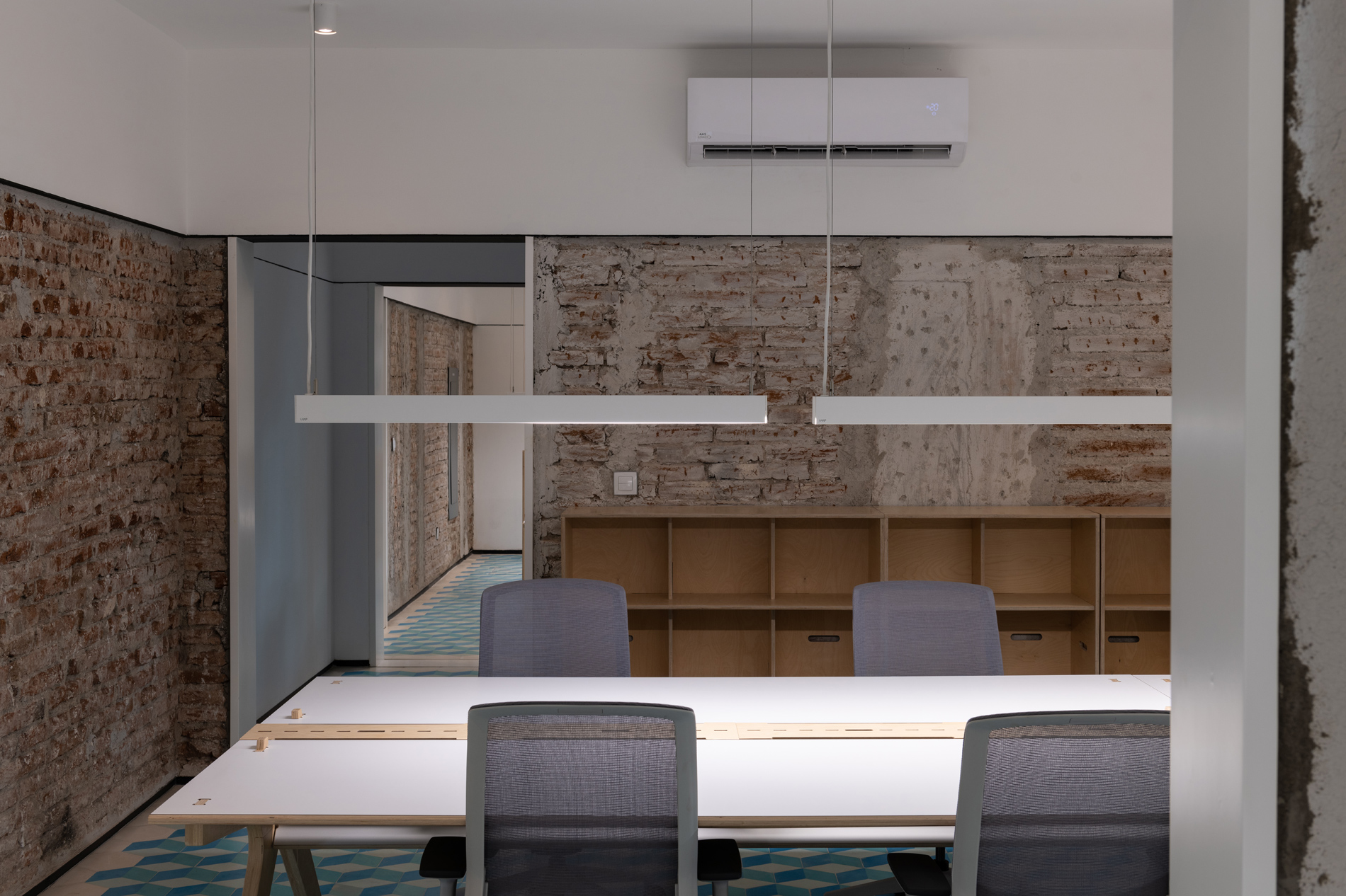 The result is an elegant balanced ensemble of the new and the old, where the arches, the plaster, and the contemporary rough concrete complement each other. But especially, we obtain a design that beautifully prioritizes the ambition of its users.