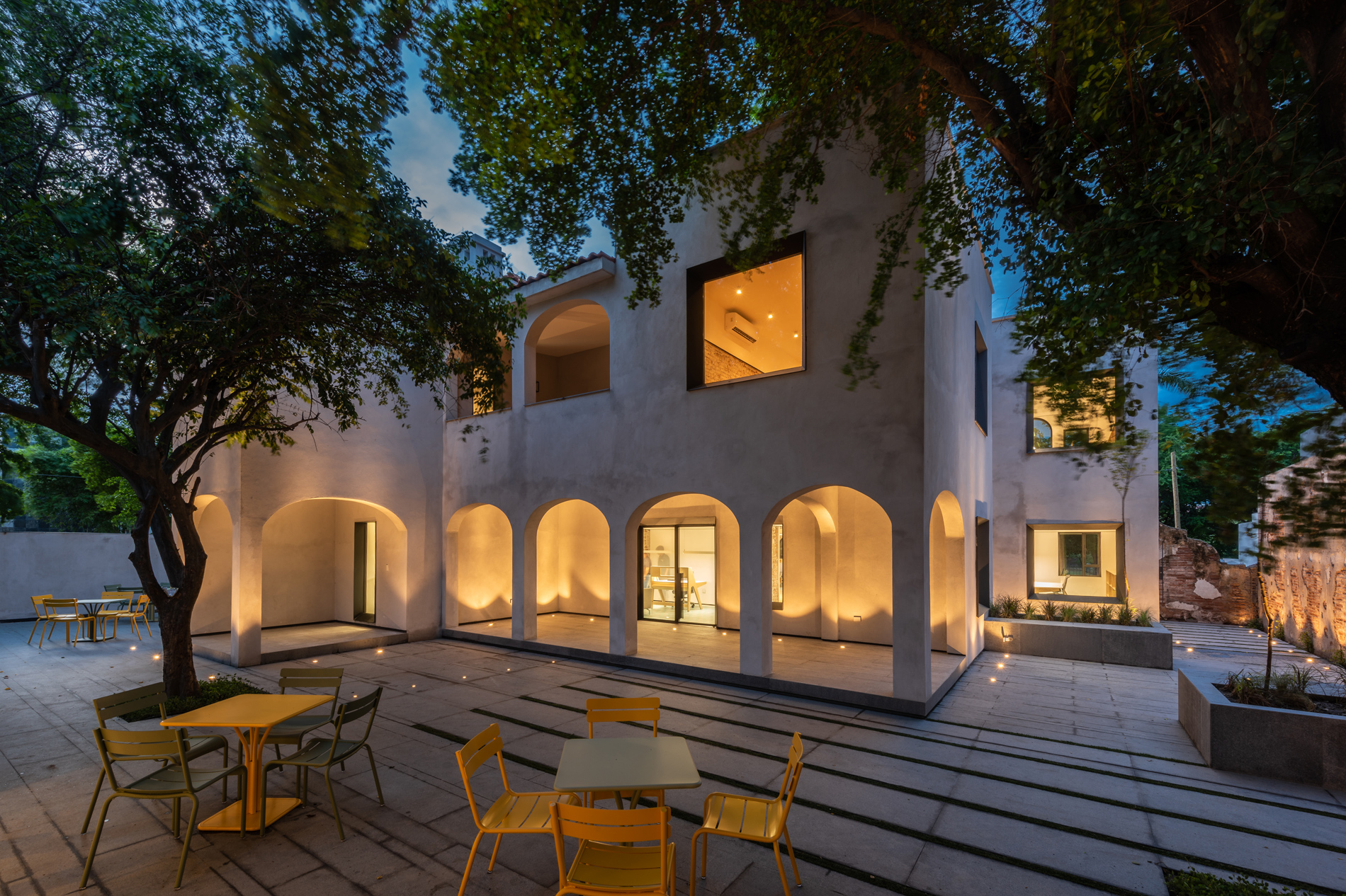 The original building, a century-old colonial house, was completely renovated and consolidated by the new volumes.