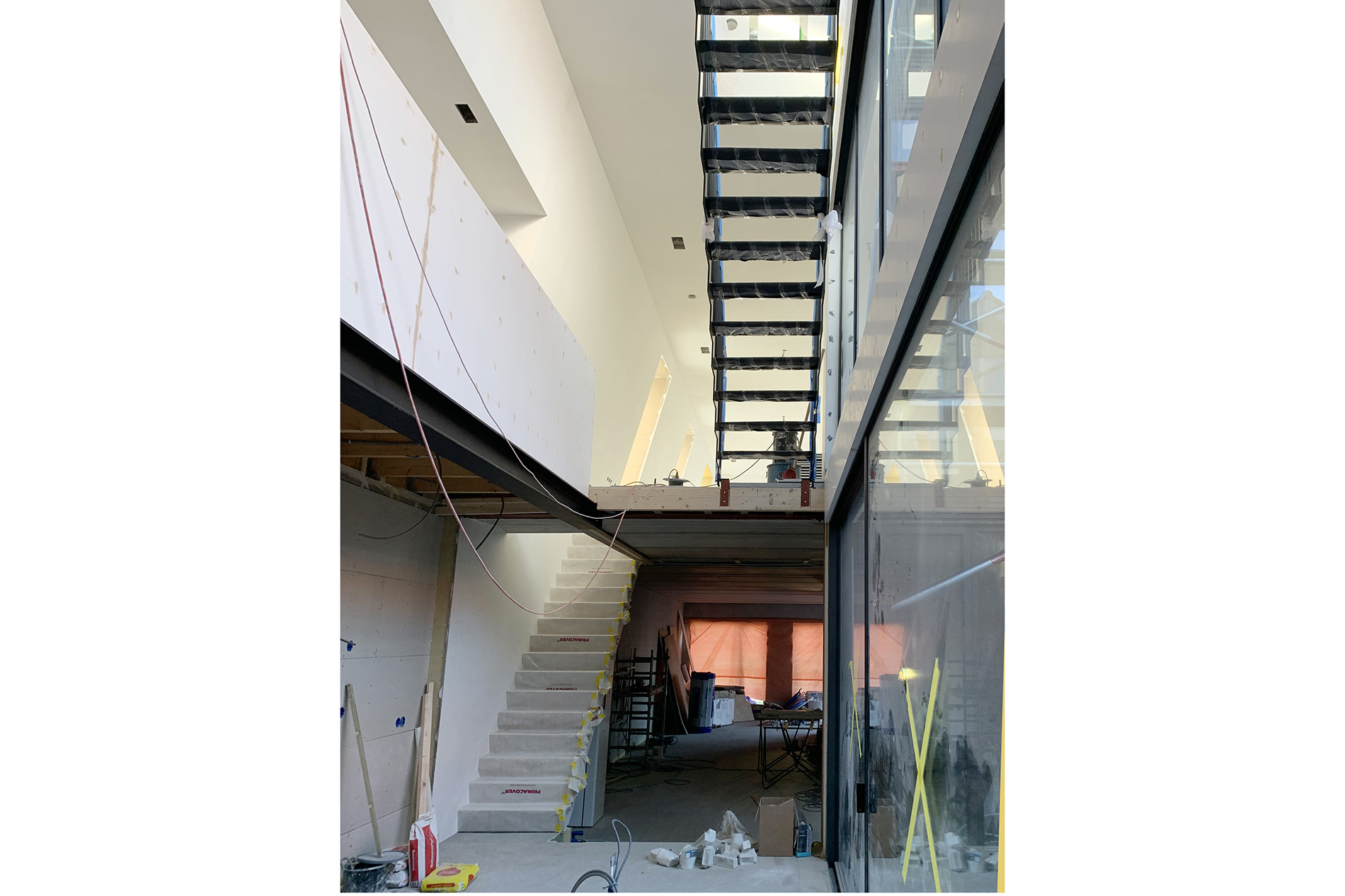 The heaviness of the materials contributes to the characteristic monolithic presence of the new volume.