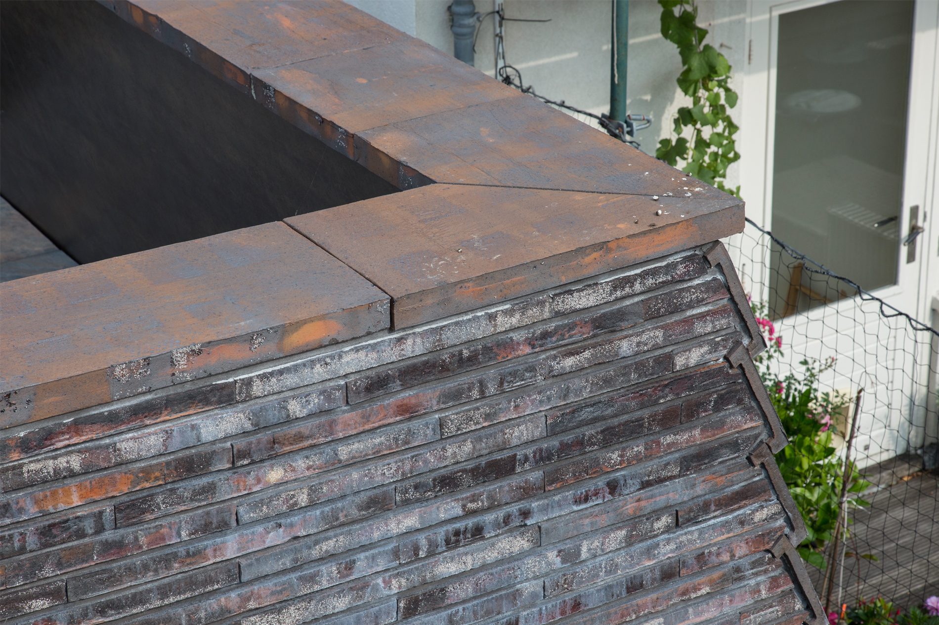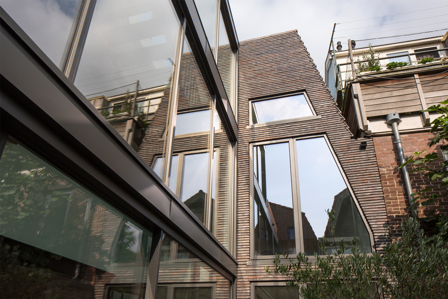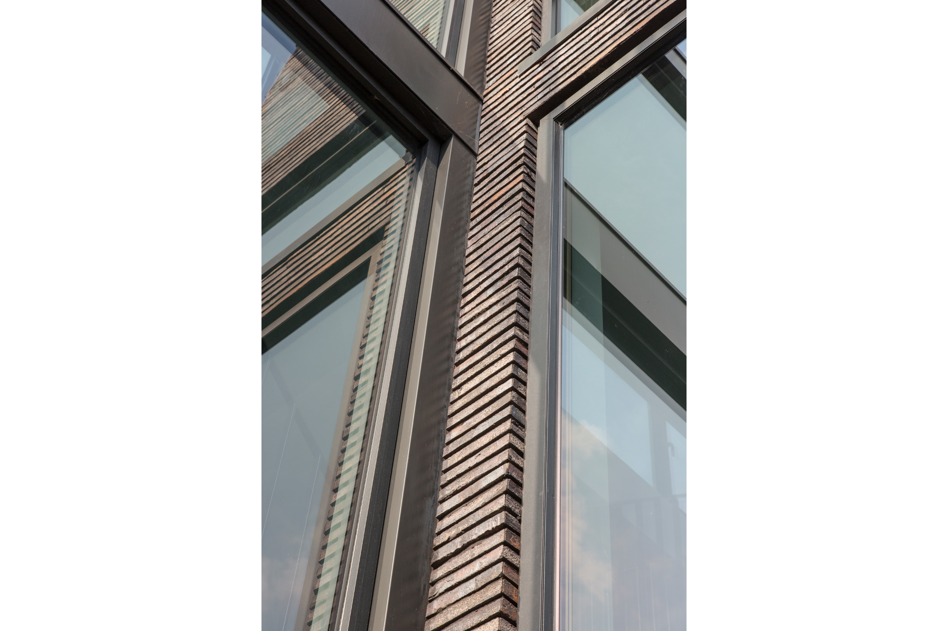 We chose hand made bricks and hand made ceramic roof tiles (Petersen) for the materialization of the new volume.
