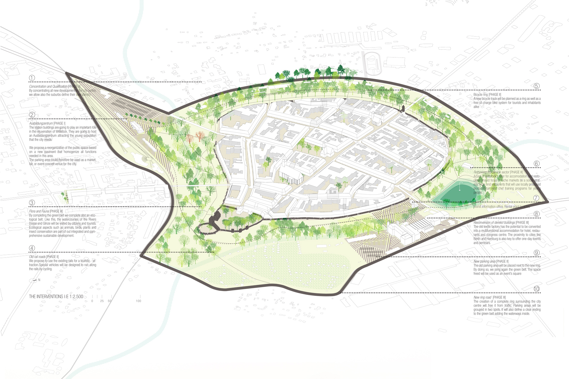 We believe the right move for Wittstock is to go back to a more concentrated space, developing concentric circles starting from the centre to regain identity and avoid degradation.