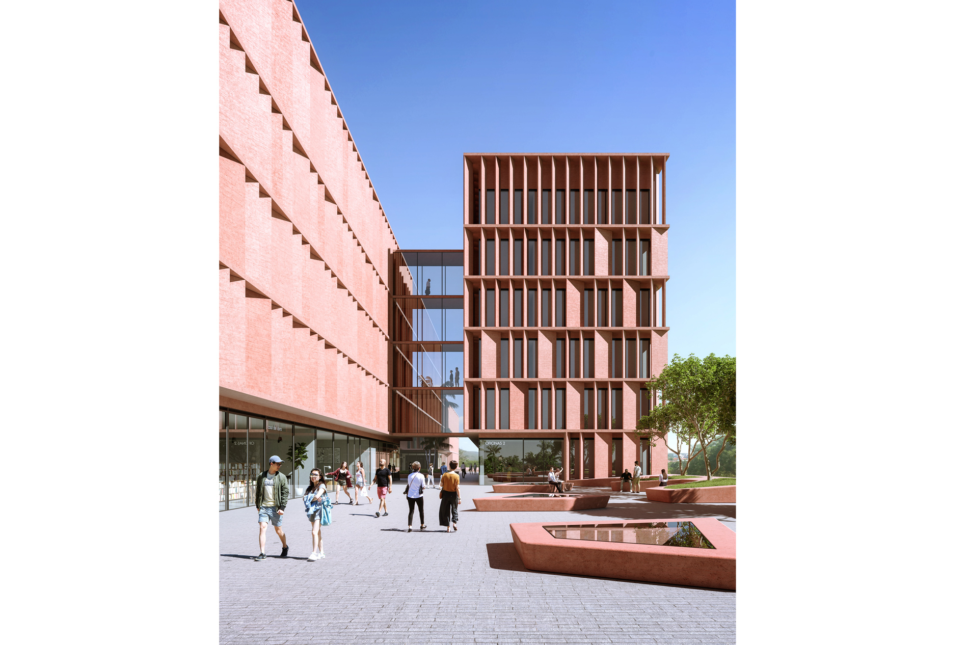 The design brief requested office, commercial and parking spaces and public and recreational spaces.