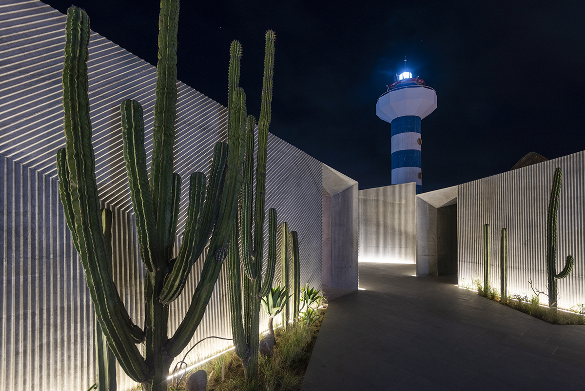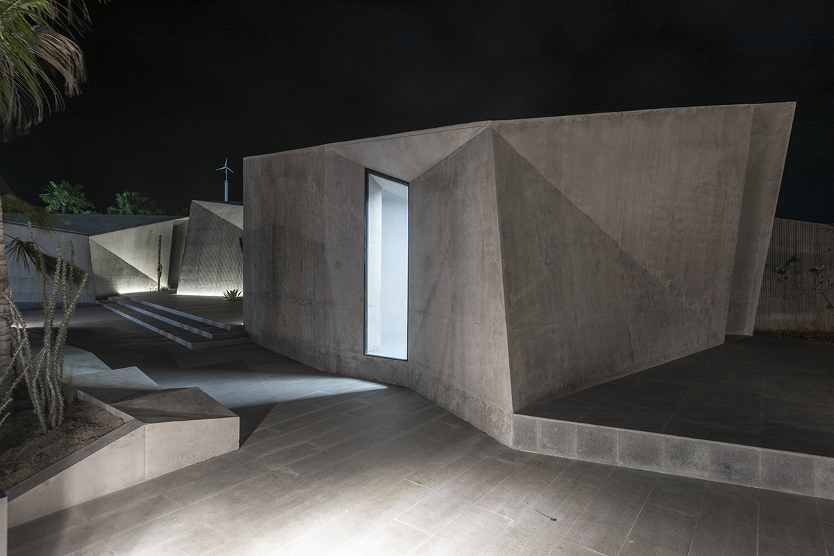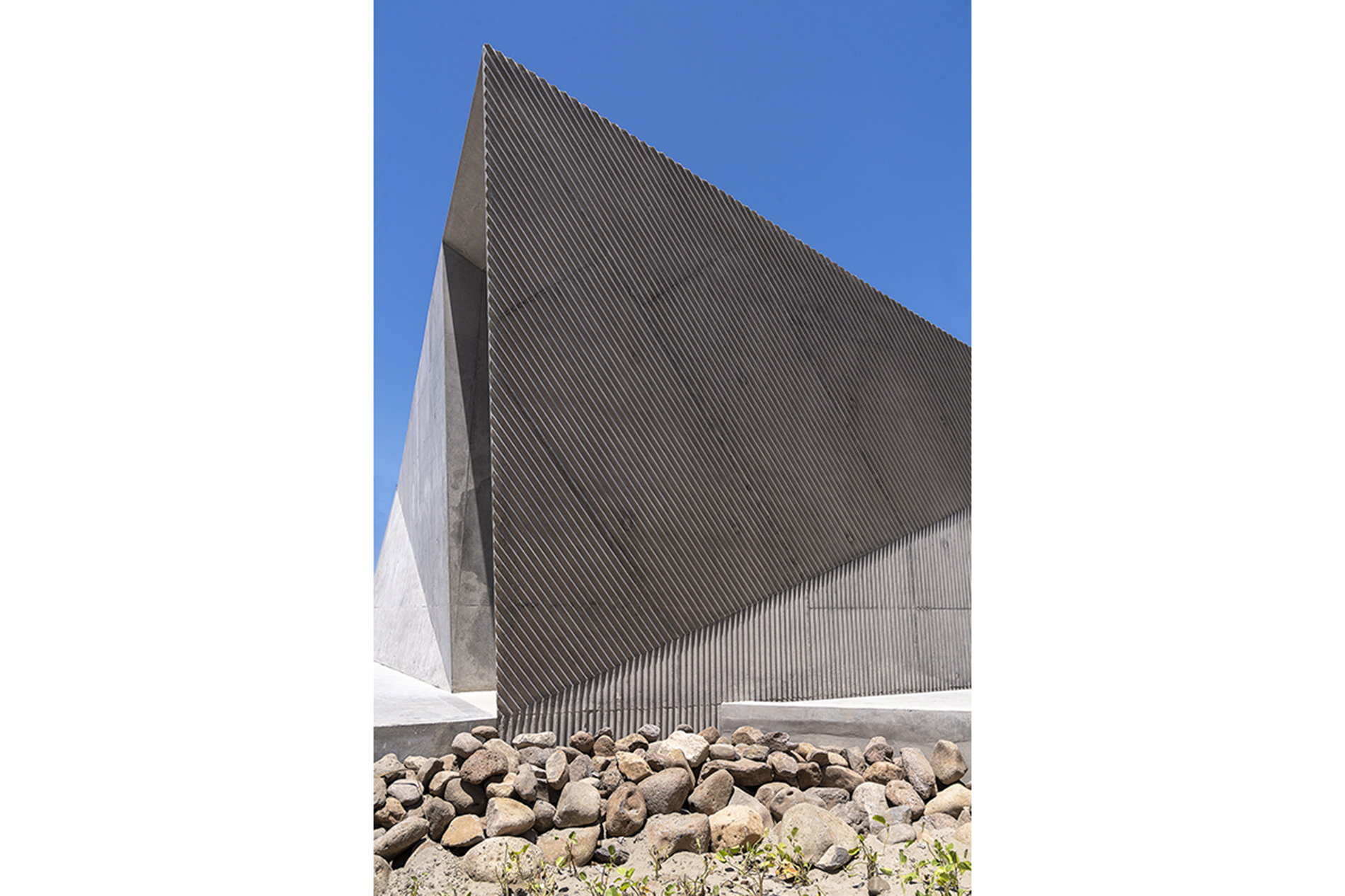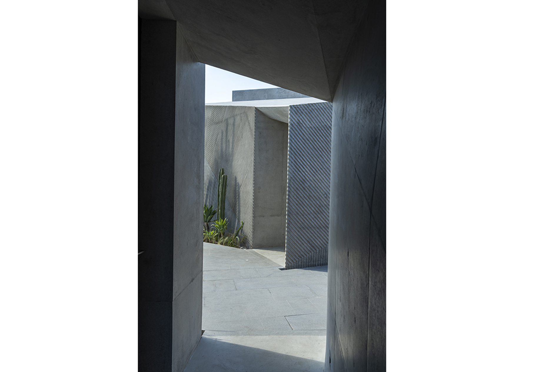 Five sculptured concrete boxes contain kitchen, toilets, storages, offices and installation rooms.
