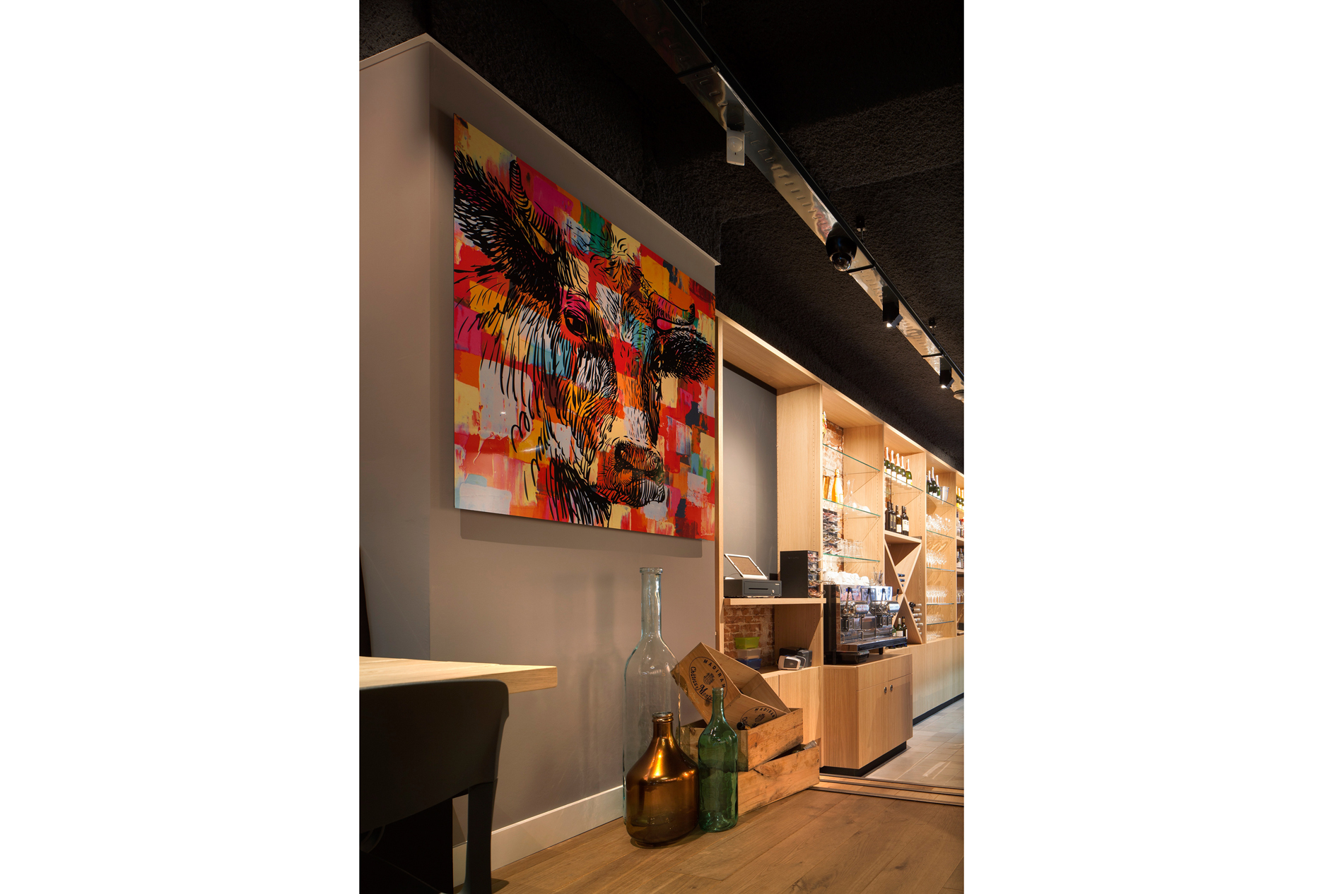 The restaurant’s interior concept sticks to the basic materials of wood and metal. Due to their combination, a warm yet robust tone is created.