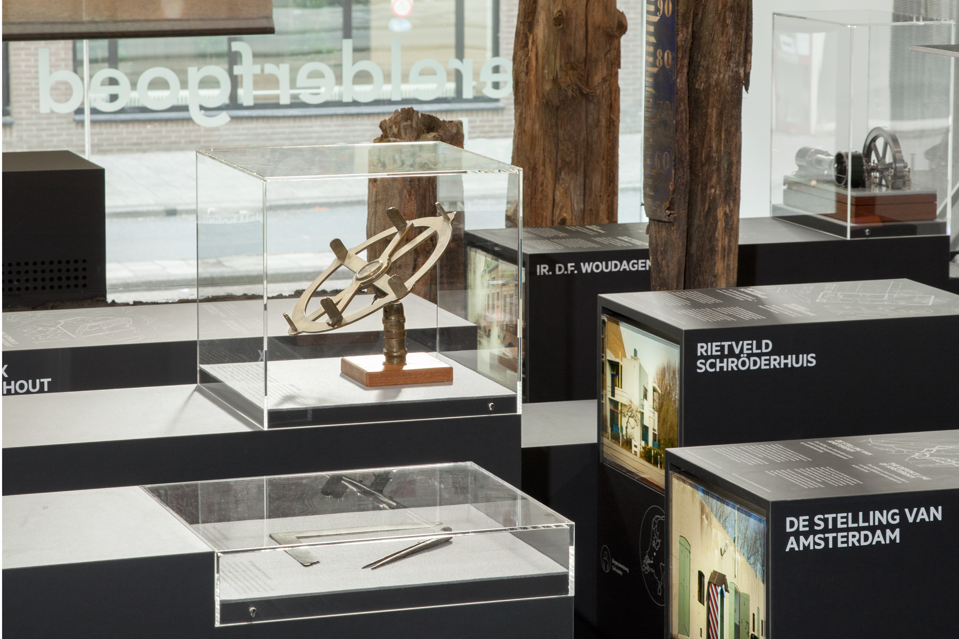 On exhibit are special objects from each of the Dutch World Heritage sites, such as a 16th century pair of compasses from the Canal District Amsterdam and a small divan table designed by Gerrit Rietveld.